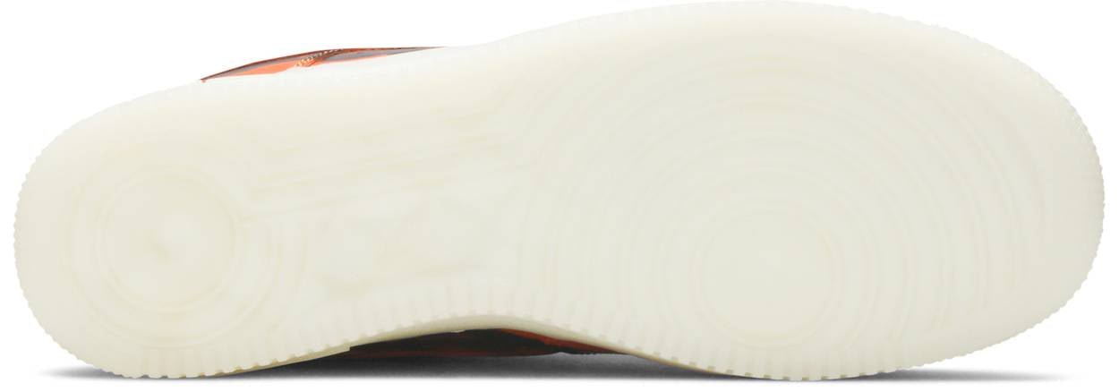 The Nike Air Force 1 Low ‘Orange Skeleton’ revisits a Halloween-inspired theme from 2018, featuring a skeletal graphic atop a white leather upper. This follow-up colorway showcases the same bare-bones design on a monochromatic orange leather build, accented with black lace dubrae and matching Nike Air branding on the heel tab. A top-down view of the skeletal foot adorns the custom sockliner, while the semi-translucent rubber cupsole is treated to a glow-in-the-dark finish for green-tinged luminescence.