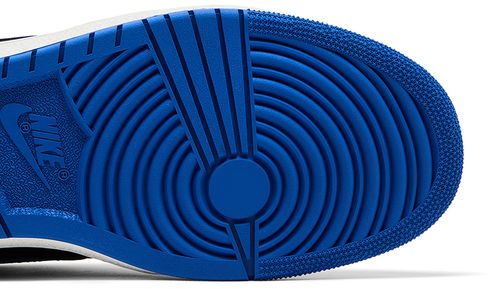 The Air Jordan 1 Retro Low '85 OG 'Royal' combines a black base with royal blue accents on the toe box, Swoosh, heel overlay and back tab, featuring the iconic Wings logo. A woven Nike Air tag graces the breathable nylon tongue. Modeled after the original 1985 release, the midsole comes replete with a vintage off-white and encapsulated Air-sole cushioning in the heel.