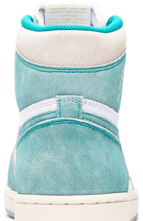 The Air Jordan 1 Retro High OG ‘Turbo Green’ complements the silhouette’s clean lines with a classic two-tone design. A textured white leather base is contrasted by soft suede overlays in Turbo Green. The latter design element is burnished to give off a vintage aesthetic, a quality that’s further enhanced by a midsole finished in Off-White Sail. In addition to a woven Nike Air tongue tag in purple and yellow, exterior branding also includes a line of text at the base of the quarter panel that reads ‘SP 19 Air Jordan 1 High OG.’