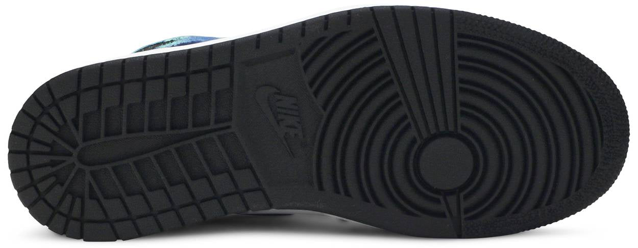 The Air Jordan 1 “Tie-Dye” proudly displays a tropical vibe for the warmer months of the year. This Summer 2020 release features many true-to-original design components of the classic Jordan 1 while remaining positively contemporary with lively blue and green tie-dye leather overlays on the forefoot, collar, and heel. Black leather appears on the perforated toe box and white leather dots the mid-panel. Classic Swoosh detailing in black leather is found on each side and a black Wings logo can be found on the collar. The look is finished off with a black nylon tongue and a contrasting white midsole and black outsole.
