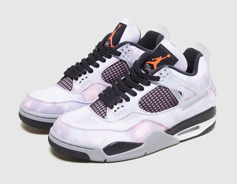 Believed to serve as a nod to legendary coach Phil Jackson who coached Michael Jordan during all 6 of his NBA Championships, the sneaker gets covered in an official color scheme of “Amethyst Wave/Bright Crimson-Black-Cement Grey”. The popular model is highlighted by a tie-dye-like upper that is contrasted with black and red accents on the laces, tongue tags and branding, inner liner, mesh paneling, and midsole. A white midsole and grey rubber outsole serve as the finishing detail on this Air Jordan 4