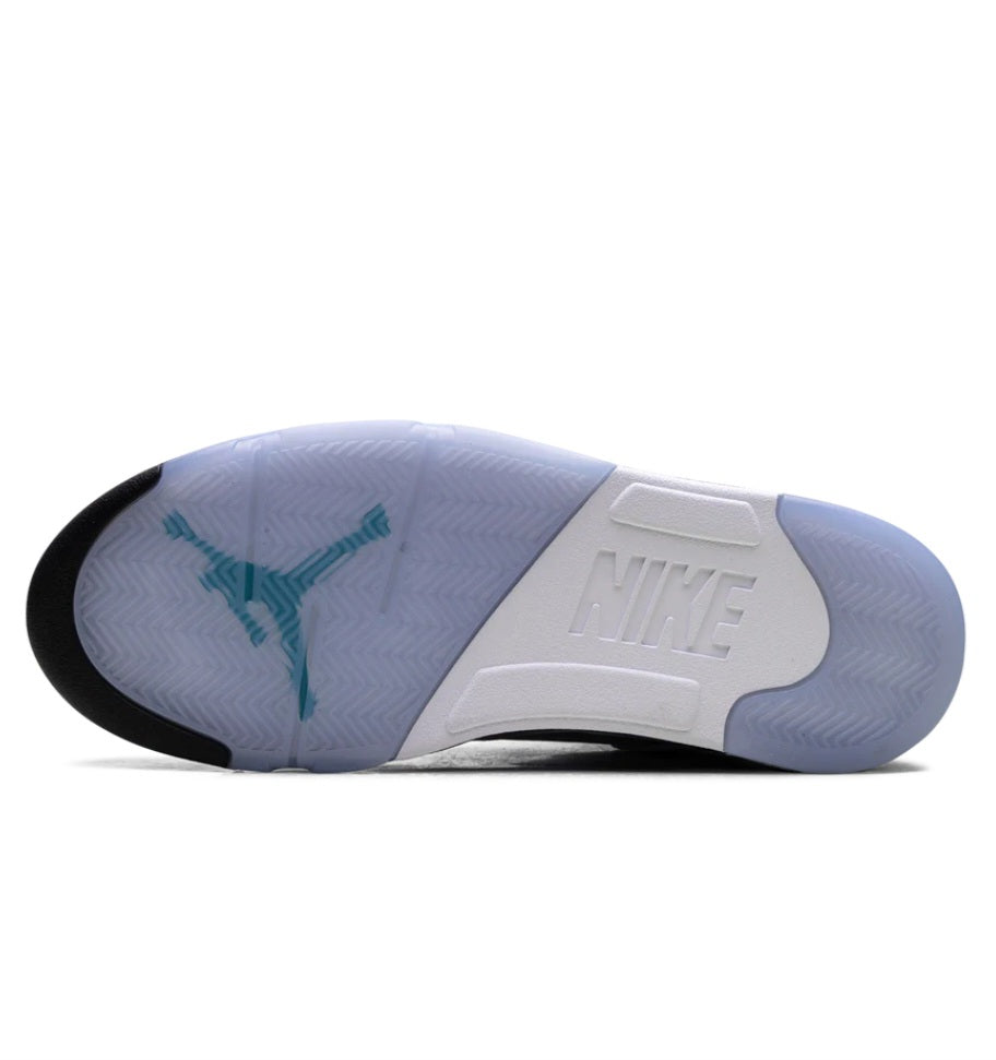 The Air Jordan 5 "Grape" is one of the most popular colorways of Michael Jordan's fifth signature shoe. Popularized by its appearance on the TV show The Fresh Prince of Bel-Air, the "Grape" AJ5 OG returned in 2025. The sneaker features a white upper that is accented with a purple tongue adorned with an aqua Jumpman logo. The Jordan 5 also has purple and aqua accents on the midsole and the Air Jordan 5's signature toggle lace lock.