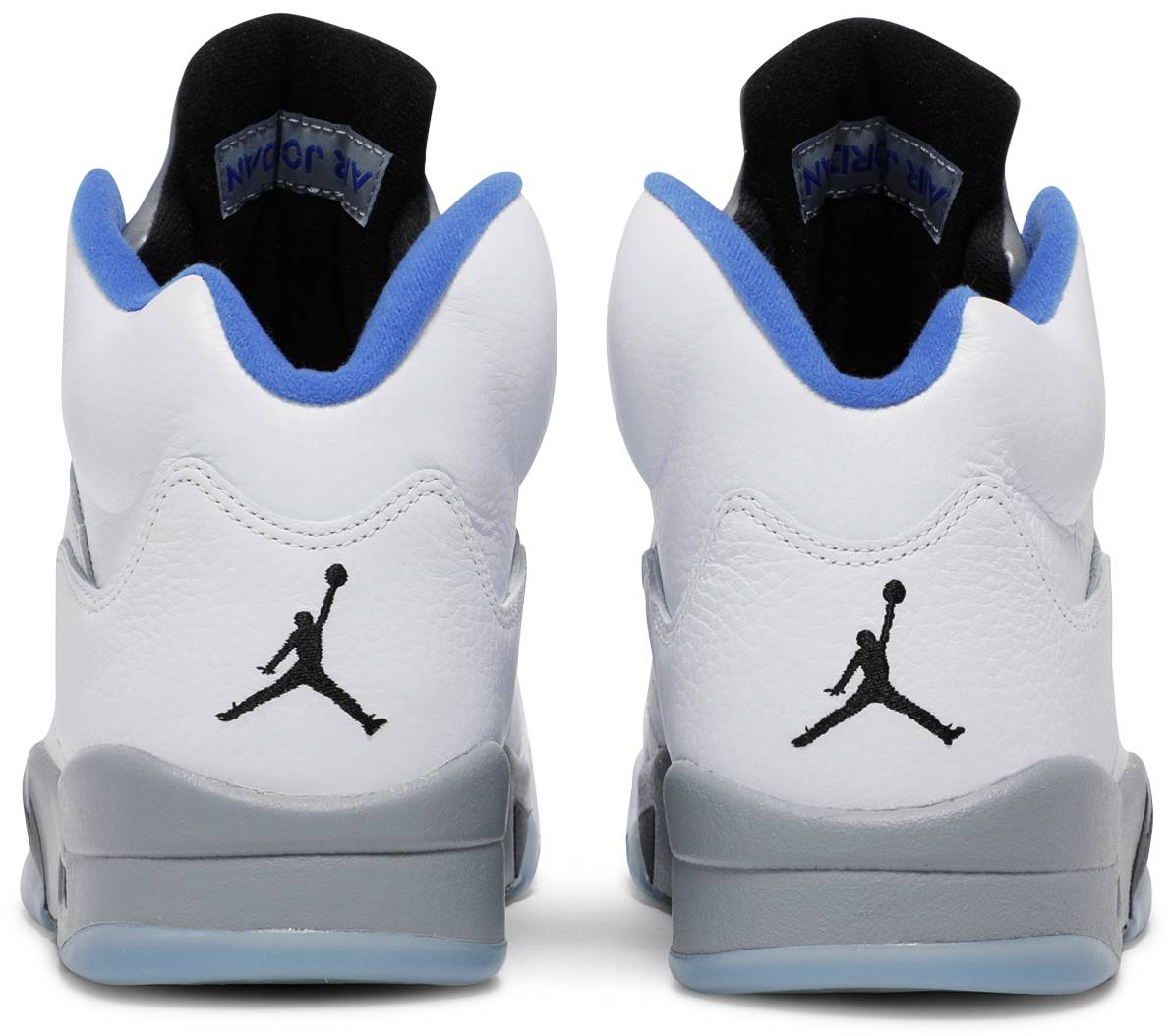 The Air Jordan 5 Retro ‘Stealth 2.0’ delivers a refreshed take on the original ‘Stealth’ Air Jordan 5 from 2006. The mid-top makes use of tumbled white leather throughout the upper, accented with powder blue Jumpman branding on the back heel and reflective silver tongue. A pale grey finish is applied to the midsole, featuring a visible Nike Air unit in the heel and a subtle paint splatter effect on the AJ5’s signature shark tooth detailing.