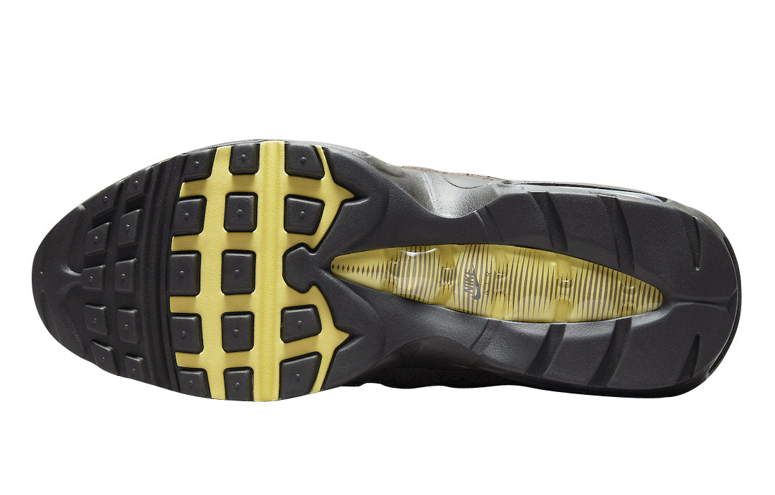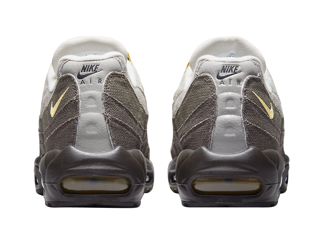 Earth tones and a new mix of materials come together on this colorway of the Nike Air Max 95. Dubbed the Nike Air Max 95 “Ironstone”, this flavor of the popular model gets covered in an official color combination of Ironstone, Celery, Cave Stone, and Olive Grey. The shoe comes constructed out of a hemp-like textile on the side panels in a few different earth hues along with a premium brown suede hitting the toes. For some more contrast we see yellow detailing on the eyelets and branding along with a brown rubber midsole and black rubber outsole.