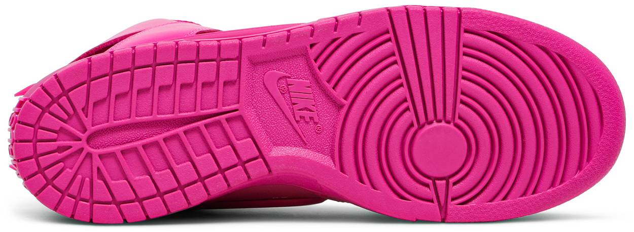 Made in collaboration with the Tokyo-based fashion label, the AMBUSH x Dunk High ‘Cosmic Fuchsia’ celebrates the silhouette’s 35th anniversary with exaggerated detailing. The high-top features a leather upper in a monochromatic pink finish, highlighted by an extra-tall leather tongue and a molded Nike Swoosh with a tail end that extends past the actual shoe. Dual Nike and Ambush branding adorns the woven tongue tag.
