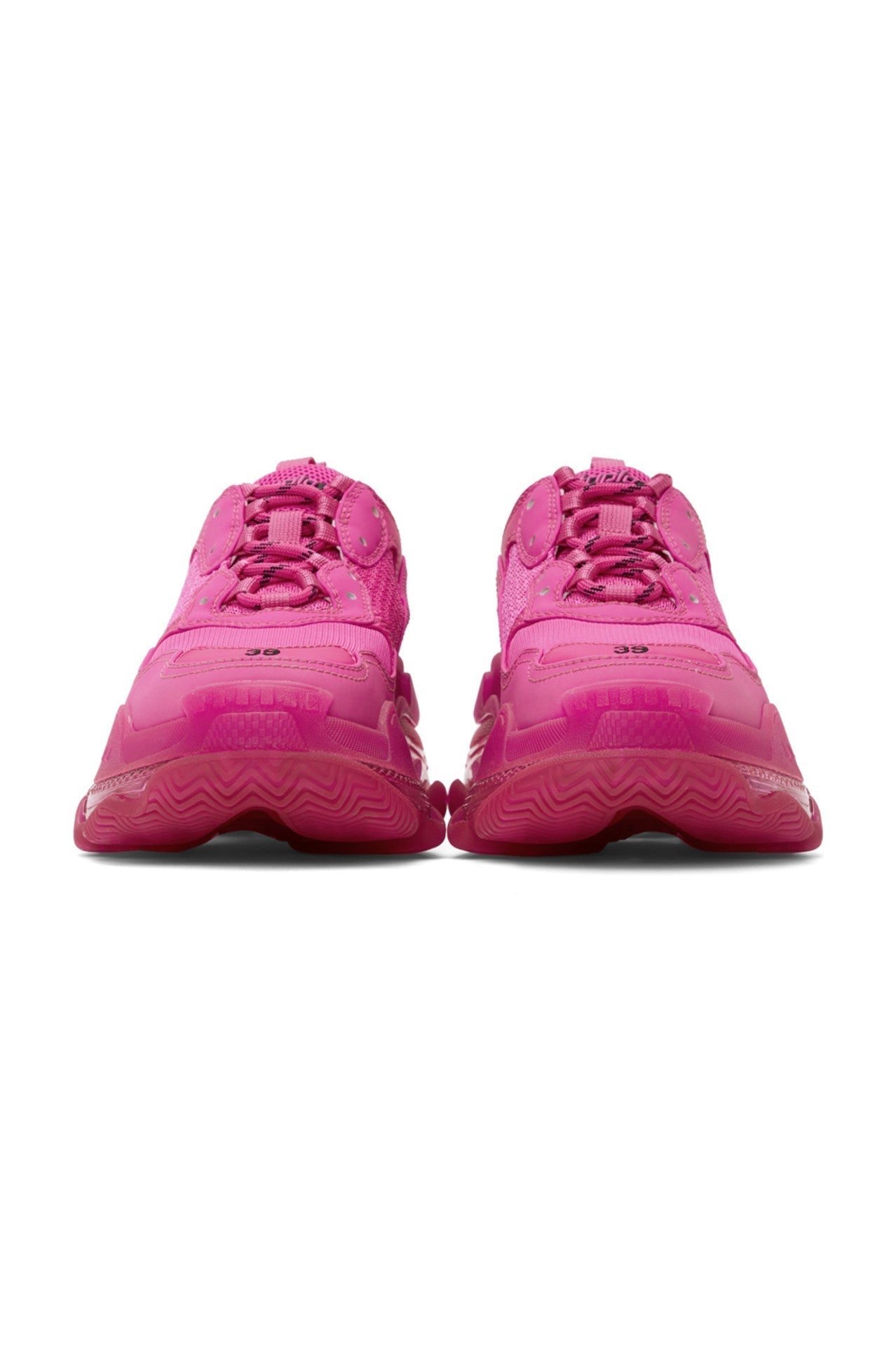 Low-top panelled nubuck, buffed leather, and mesh sneakers in pink. Number embroidered in black at round toe. Lace-up closure woven in pink and black. Grosgrain pull-loop and rubberized logo at padded tongue. Padded collar. Grosgrain pull-loop at heel collar. Logo embroidered in black at outer side. Tonal translucent rubber midsole and treaded rubber outsole.