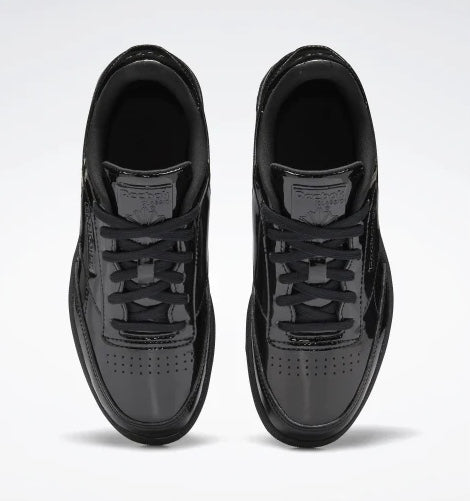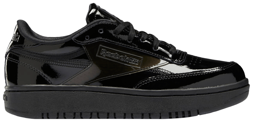 Taken from a larger collection with the Bronx rapper, the Cardi B x Reebok women’s Club C Double ‘Core Black’ treats the retro-inspired silhouette to a glossy patent leather build in a monotone finish. Smoky transparent TPU is utilized on the sneaker’s tongue tag and cross-check side panel, both stamped with Reebok branding. A matching black finish is applied to the stacked midsole, giving the shoe an elevated profile. ‘Cardi B’ in gold foil lettering decorates the custom sockliner.