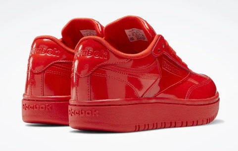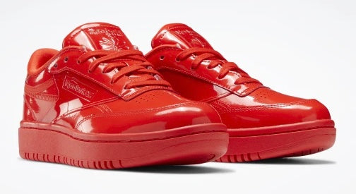 Dropping as part of a capsule collection with the Bronx-born rapper, the Cardi B x Reebok women’s Club C Double ‘Instinct Red’ treats the classic silhouette to a glossy monochrome makeover. The sneaker’s exterior is given a saturated crimson finish, encompassing the patent leather upper and elevated platform sole unit. ‘Cardi B’ is printed on the custom sockliner, while Reebok branding is stamped on the transparent TPU overlay that adorns the lateral quarter panel.