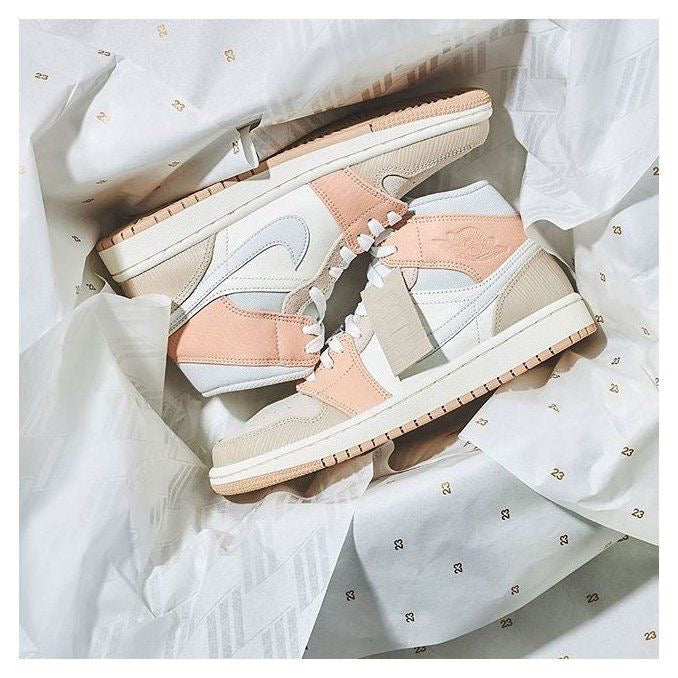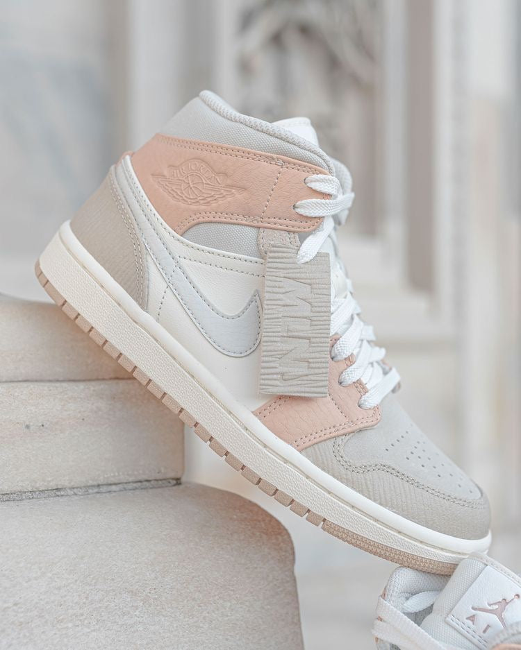 Air Jordan 1 Mid 'Milan' draws inspiration from Italy’s fashion capital, featuring colors and textures that call to mind the city’s gothic architecture. The upper combines an Off-White leather quarter panel with textured leather overlays in varying shades of beige, along with a tan suede toe box and a grey textile collar. A leather MLN hangtag gives the nod to fine Italian craftsmanship.