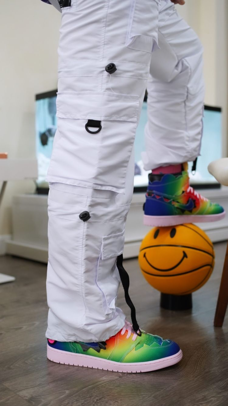 First debuting during his super bowl LIVE performance, J. BALVIN is set to release his colorful Aj1 collab with Jordan brand, the textured canvas upper is a gradient rainbow 🌈, while pops of soft black leather appear behind jagged edges. Jordan branding and a removable BALVIN smiley 😃-face patch complete the look.