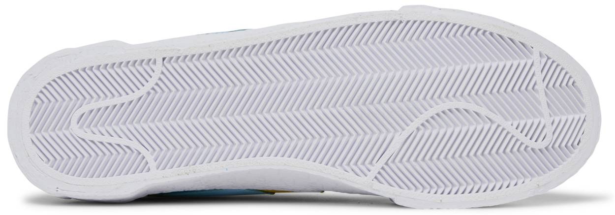 The KAWS x sacai x Nike Blazer Low ‘Neptune Blue’ is drawn from a four-piece collaboration that mingles the creative visions of Chitose Abe and Brian Donnelly. Better known as KAWS, the artist updates sacai’s reconstructed Blazer with contrasting hues inspired by his ‘URGE’ series. The aqua-colored leather upper is accented with doubled-up eyestays and Swooshes, the latter components rendered in powder blue and yellow. KAWS’ signature ‘XX’ motif is debossed on the white rubber midsole, featuring multiple overlapping layers that wrap around the sneaker’s heel.