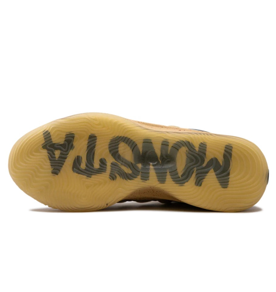 This Nike KD 17 delivers a collaborative release with Hip hop producer Bink!. A sand-colored textile upper with a glossy black TPU cage integrate into the lacing system. 'Bink!' is inscribed on the lateral heel, built with patterned brown textile, while a stitched hands graphic appears on the tan leather overlay that reinforces the back heel. Brown speckled detailing covers the lightweight foam midsole, supported by a translucent rubber outsole that reveals the word 'HUMBLE' in oversized block lettering.
