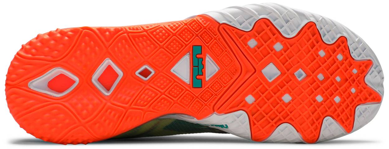 The Nike LeBron 18 Low ‘LeBronold Palmer’ revisits a beverage-inspired theme previously featured on the LeBron 9 Low and LeBron 12 Low. Like its predecessors, this pair showcases a vibrant, tropical palette, highlighted by a yellow textile upper covered in a green palm-leaf print. A Bright Mango Swoosh is matched by a large-volume Max Air unit under the heel, which works in tandem with a React foam midsole to deliver a blend of lightweight cushioning and on-court responsiveness.