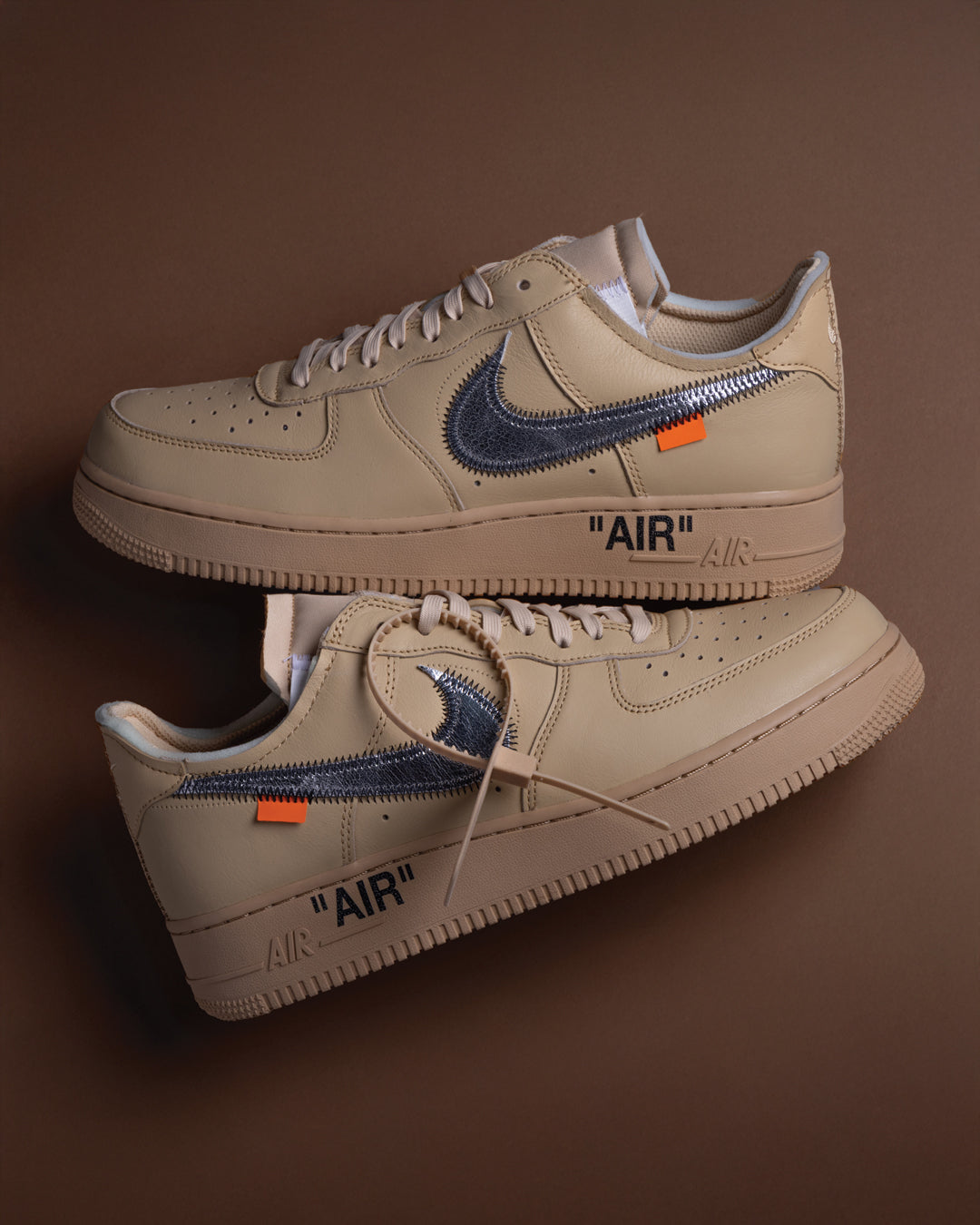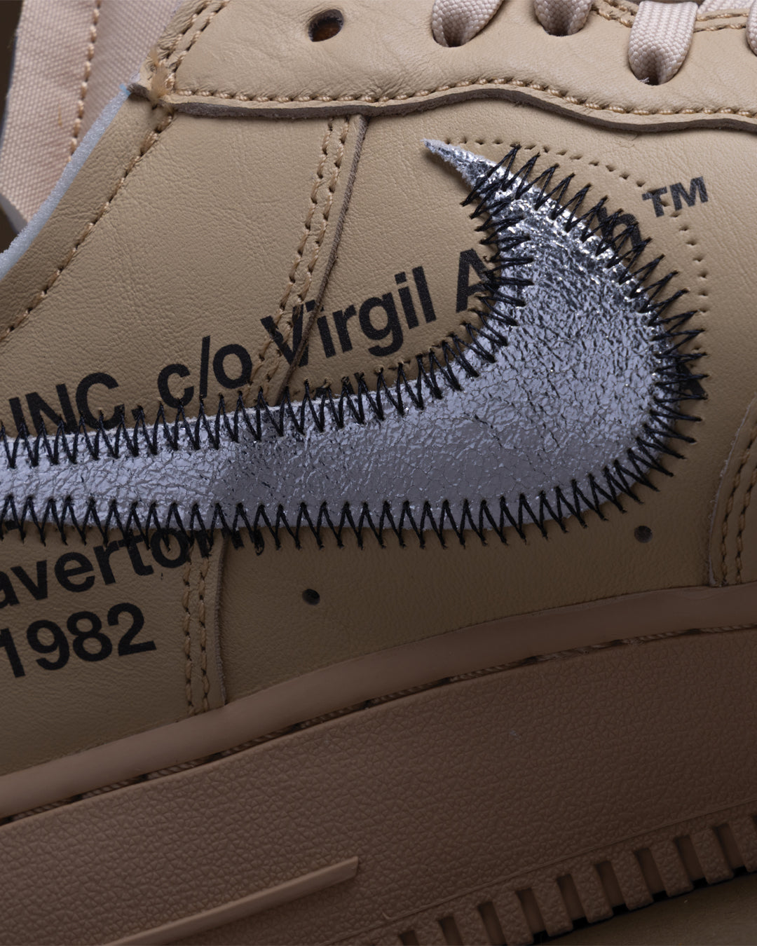 Experience a fresh piece of design history with the Off-White x Nike Air Force 1 "Sesame". This remarkable sneaker, first previewed at a private exhibition during Miami's Art Basel, has been a highly coveted item among collectors for years. The design stays true to Virgil Abloh's unmistakable aesthetic, featuring exposed foam at the sockliner and tongue, a crinkled metallic silver Swoosh with overstitching, and the signature zip tie hang tag. The sophisticated tonal "Sesame" shade provides a versatile canvas for these deconstructed elements, making it both a statement piece and a wearable work of art.