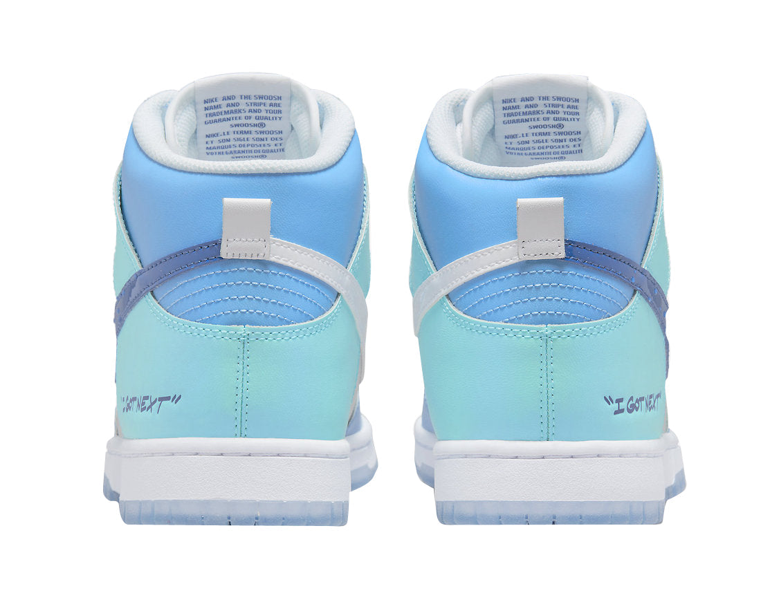 Nike’s “I Got Next” collection celebrates the game of basketball by calling next on the court. The Nike Dunk High I Got Next comes constructed in a full leather upper paired with patent leather hits on the lateral Swoosh. When it comes to the color scheme, details include a mix of light and dark Blue hues paired with iridescent detailing and White accents on the laces, medial Swoosh and midsole. Completing the look is the “I Got Next” text on the lateral ankle and an icy translucent outsole.