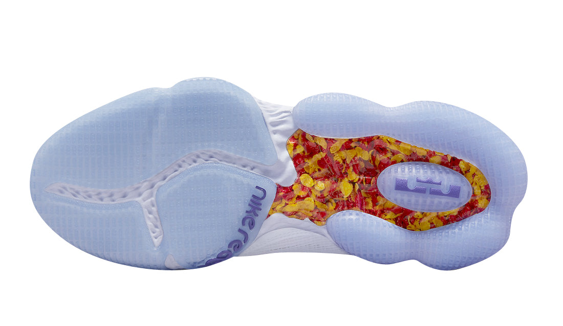 The all-new Nike LeBron 19 Low is landing for the first time, and it’s coming with a colorful design twist. As LeBron pushes the game and his creativity even further, inside of this LeBron 19 Low’s Air unit, you’ll find a new touch of Nike Basketball innovation. Inspired by the wizardry of Magic Fruity Pebbles cereal, especially when the crispy Red and Yellow flakes turn the milk in your bowl from White to Purple, the clear Air unit in this LeBron 19 Low shifts to a vibrant, translucent Purple when exposed to light — essentially creating two colorways out of thin air. Going together like cereal and milk, the “Magic Fruity Pebbles” Nike LeBron 19 Low showcases this color-changing technology for the first time on a Nike sneaker. So lace up, grab a spoon, and celebrate National Cereal Day with your two favorites: Magic Fruity Pebbles cereal and LeBron’s latest signature style.