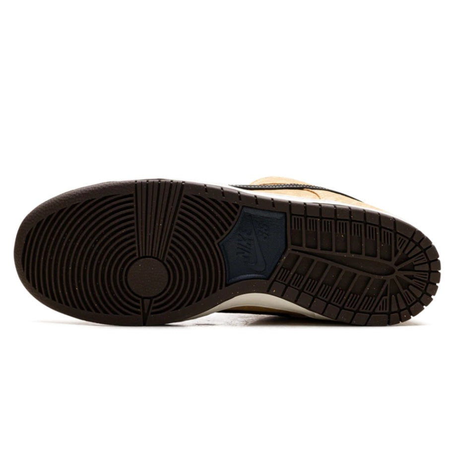 The Nike Dunk Low SB 'City of Cinema' celebrates the robust film culture of Paris. Inspired by the look of arthouse movie theaters, the retro silhouette sports a golden tan cracked leather upper with a black leather Swoosh outlined in contrast stitching. Plush velvet in a rich burgundy hue is utilized on the collar and tongue, marked with a woven Nike SB tag. An embroidered Nike wordmark graces the navy velvet back tab. Inside the shoe, the custom graphic insole depicts drawn curtains and the iconic comedy and tragedy masks.