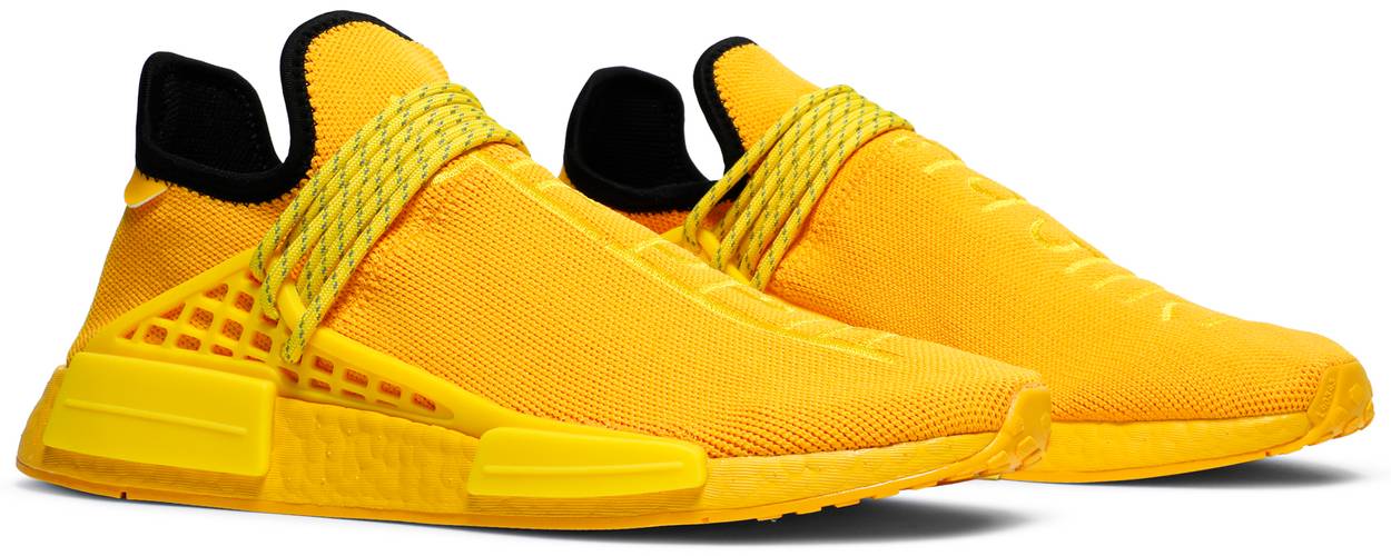 Releasing as part of a larger collection with the multifaceted creative, the Pharrell x adidas NMD Human Race ‘Yellow’ updates the lifestyle runner with a monochromatic color scheme, save for a contrasting black finish throughout the collar lining. Decorative wraparound laces are overlaid on a minimalist Primeknit textile upper, featuring tonal embroidered text that reads ‘Human Race’ in Hindi. A matching yellow Boost midsole provides responsive cushioning with each step.