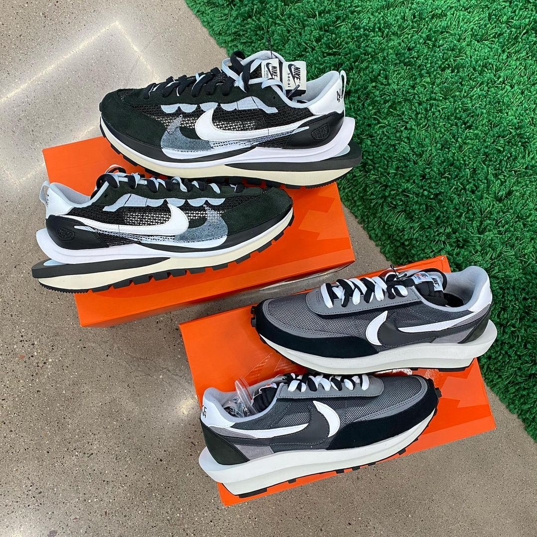 Made in partnership with the progressive Japanese fashion label, the Sacai x Nike VaporWaffle ‘Black White’ revisits the layered design language of the brands’ original LDV Waffle collaboration from 2019. This pair features a simple black and white color scheme, executed on a mesh and suede build with doubled-up tongues and Nike Swooshes. Dual Nike and Sacai branding adorns the heel tab, equipped with a webbing pull loop for easy on and off. A stacked, exaggerated midsole rides on a classic waffle outsole.