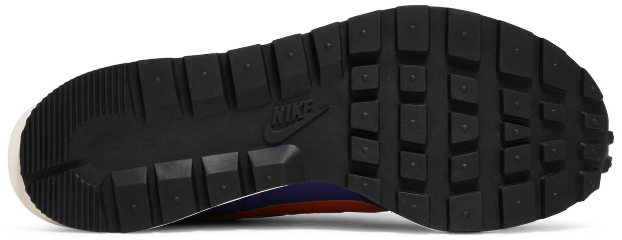Designed in coordination with Chitose Abe’s renowned fashion label, the Sacai x Nike VaporWaffle ‘Dark Iris’ showcases sumptuous hues on a retro-inspired silhouette that blends elements from the classic Pegasus 83 with the modern Vaporfly. The reconstructed upper features a purple nylon base with contrasting burnt orange accents on the leather Swoosh and heel tab, marked with dual Nike and Sacai branding. A second printed Swoosh continues a doubled-up theme applied in more literal fashion to the sneaker’s tongues and laces. A partially split foam midsole is reinforced by Nike’s iconic waffle outsole.