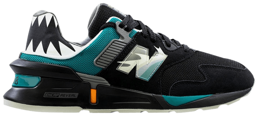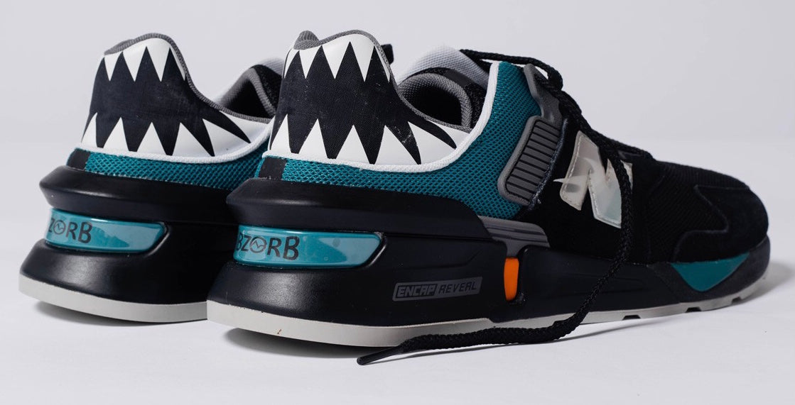 Designed in partnership with the Northern California-based retailer, the Shoe Palace x New Balance 997S ‘Great White’ takes inspiration from the Red Triangle, a region of shark-infested waters off the California coast. The lifestyle runner makes use of a black and teal mesh upper with black suede overlays at the toe and quarter panel. The latter features a wave graphic beneath a translucent TPU ‘N’ logo, while the heel is embellished with a graphic depicting triangular rows of shark teeth.