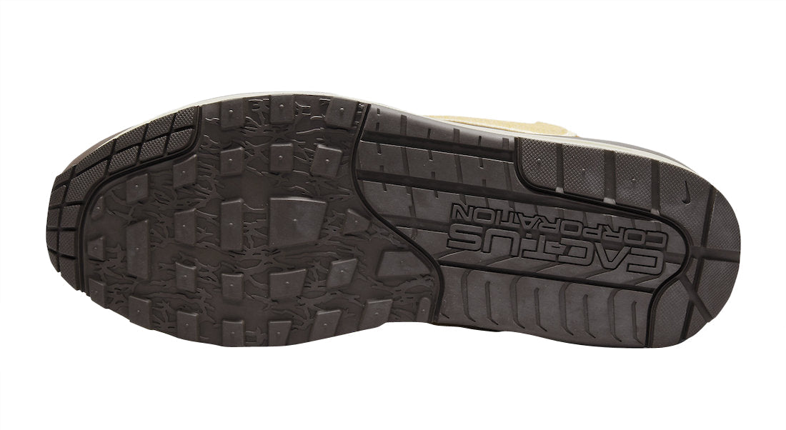 Cactus Jack is coming to town, and with it, he's bringing CACT.US CORP's Utopian goods and services. Determined to deliver a uniform to complement a new state of mind, CACT.US CORP imagined, designed, and built this Air Max 1 for Utopians everywhere. Simply put, this sneaker is made to thrive wherever it happens to be, but it carries CACT.US CORP's unique aura and durable designs. Inspired by the ACG Pocket Knife, a drawstring Gillie lacing system, custom nubuck and mesh-patterned overlays on the upper recall the '90s utilitarian classic. This Air Max 1 features a rubberized Cactus Jack tongue logo and a custom CACT.US CORP outsole, and while the lateral side displays an unmistakable reverse Swoosh, the medial side of the sneaker's design stays true to its OG Air Max 1 roots. It’s a juxtaposition fitting of CACT.US CORP's work — that of entering a new space as your old self and emerging with a Utopian state of mind.