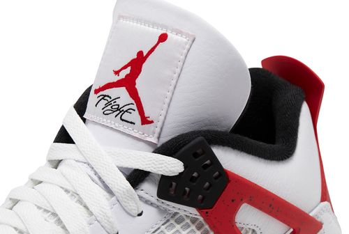 The Air Jordan 4 Retro ‘Red Cement’ showcases color blocking that recalls the OG ‘White Cement’ colorway. The mid-top carries a white leather upper with tonal quarter panel netting and contrasting black accents on the molded eyelets and interior lining. Vibrant hits of Fire Red — accompanied by black speckled detailing — land on the shoe’s support wings, polyurethane midsole and heel tab. The latter features embossed Jumpman branding. A second Jumpman icon decorates the Flight tongue tag. Underfoot, a herringbone-traction rubber outsole delivers superior grip.