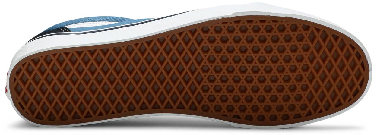 The Vans Old Skool is a classic sneaker with a low-profile silhouette, seen here in a 'Navy' colorway. A canvas denim upper gets treated with navy suede on the toe cap, heel and eyestays. Custom leather jazz stripes detail the sides, while a lightly padded collar is trimmed with a leather interior. A double stitch technique utilized throughout offers improved durability. Iconic branding is found on the footbed and heel license plate. The signature vulcanized construction and Waffle tread sole round out this iconic skate silhouette.