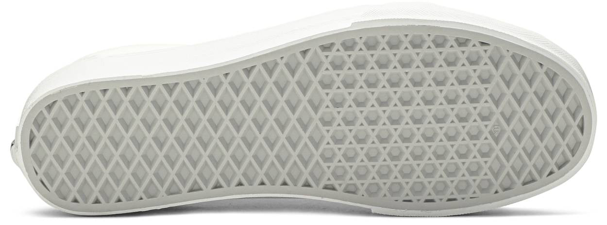 The classic Vans Old Skool is streamlined with a low-top silhouette in a durable True White canvas and matching white laces. This shoe is embroidered with leather stripes on the lateral sides and features minimal branding on the heel and insole. A molded EVA footbed provides enhanced shock absorption, while the padded tongue and lining offer comfortable, lightweight cushioning. A Waffle-stamped outsole brings distinction to this reserved style.