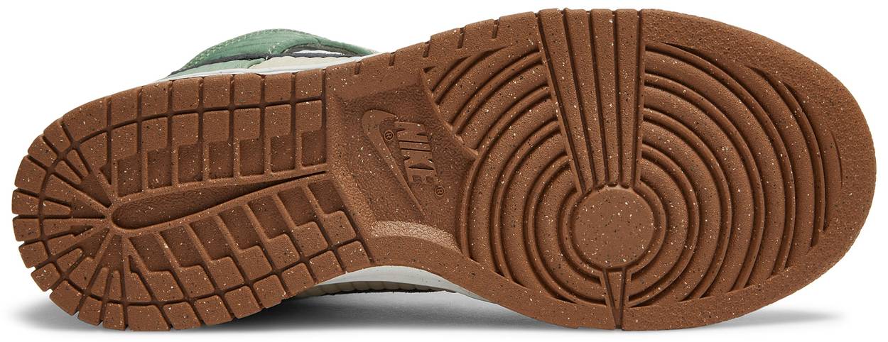 The quilted upper, which is pieced together by many a different swatch, alternates between shades both neutral and vibrant. A light, pastel green, for example, dresses the entirety of the ankle flap, while tans dye the suede eye stay, laces, and just half of the mid-panel. White, then, fills in the rest, matching the toe, collar, tongue, and the warming fleece that upholsters the lining. Finally, the tread dyes a dark brown like the toe, its main distinction being the scraps that signal its recycled nature.