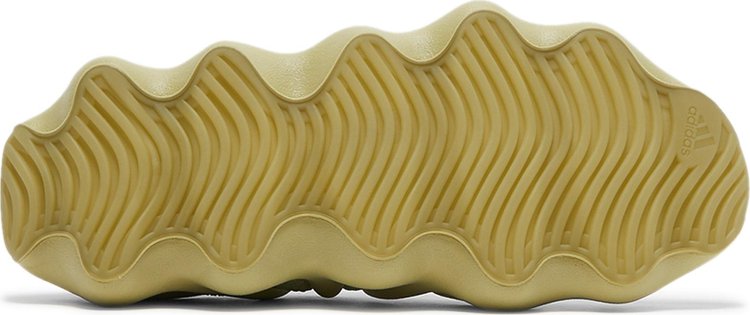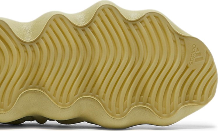 The adidas Yeezy 450 ‘Resin’ showcases a pale green monochrome finish throughout the sneaker’s futuristic build, which comprises a one-piece knit upper and a claw-like EVA midsole, complete with tapered ‘fingers’ that wrap up the side panels. Details include tonal rope laces, a stretchy sock-like cuff, and an Ortholite insole marked with dual adidas and Yeezy branding. Underfoot, a contoured rubber outsole features a wavy traction pattern for optimal grip.