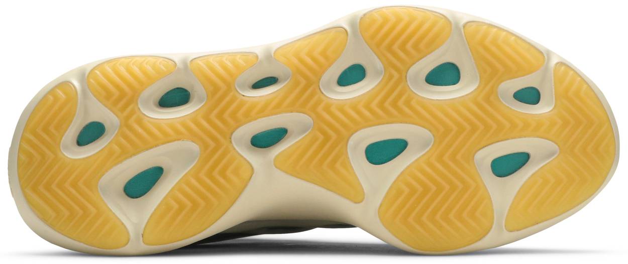 The adidas Yeezy 700 V3 ‘Kyanite’ showcases flowing stripes of blue coloring throughout the breathable upper, constructed from monofilament engineered mesh with exoskeletal RPU overlays coated in a glow-in-the-dark finish. Interior bootie construction delivers a snug fit, while a reinforced rubber toe cap provides added durability. The sneaker rides on a lightweight EVA midsole encapsulated in an off-white PU cage, supported by a herringbone rubber outsole.